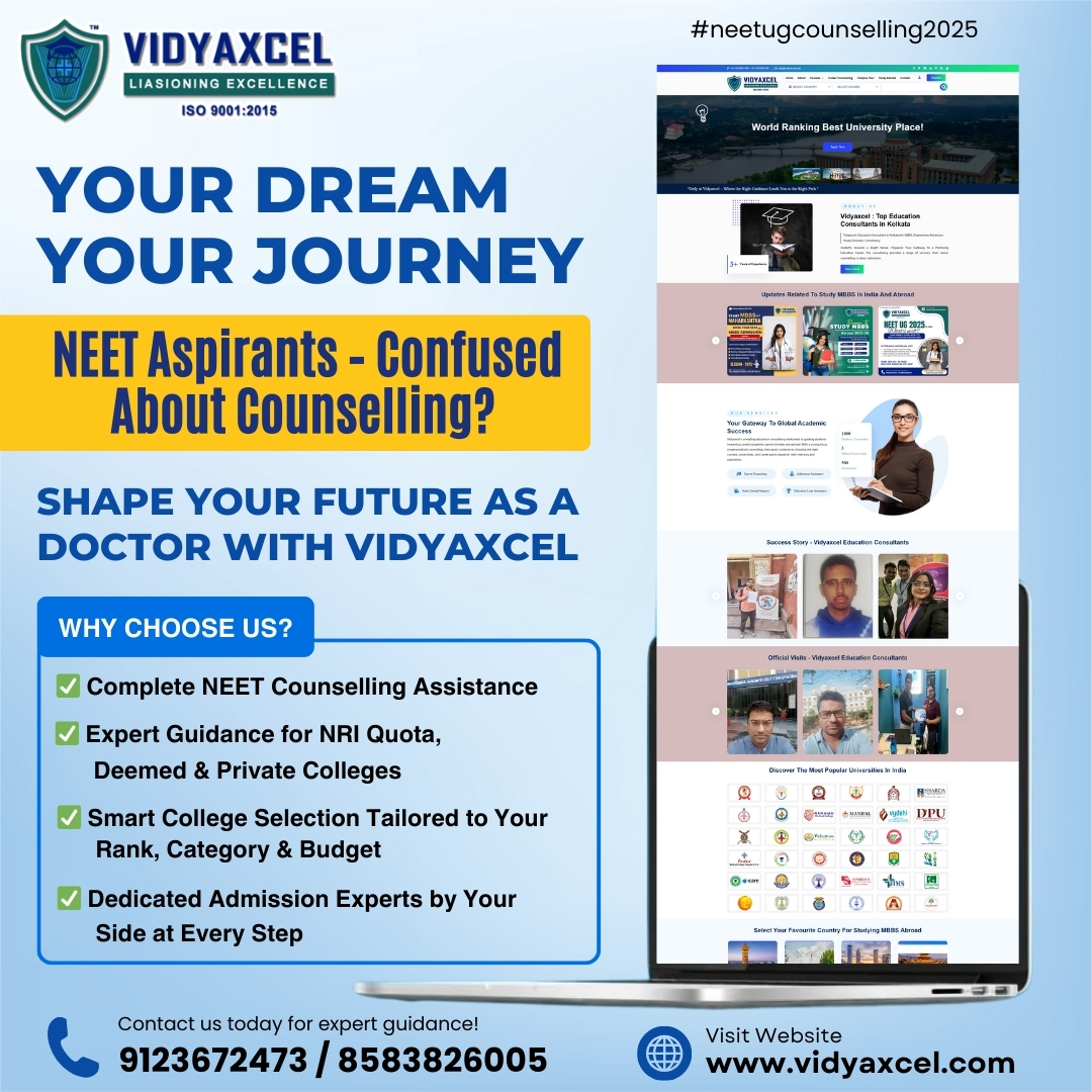 β Unlock your medical dreams with VIDYAXCEL β India's premier MBBS admission consultancy! ππ Renowned for an unparalleled track record and steadfast commitment to excellence, Vidyaxcel stands as the beacon for aspiring medical professionals. Trust in their expertise to pave your way to a successful MBBS journey β